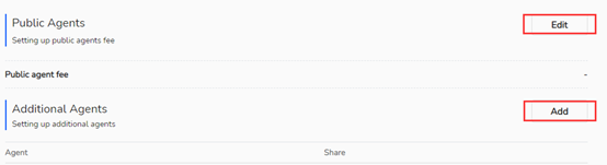 رسوم الوكيل هي جزء من رسوم الأداء. يشير الوكيل العام (Public Agent) إلى الوكيل الذي ينضم إليه المتابع من خلال رابط الانضمام. الوكيل الإضافي (Additional Agent) هو وكيل العرض بالكامل.