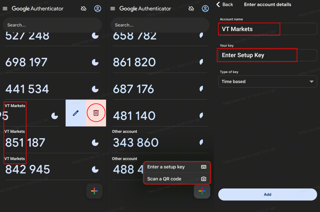 1. قم بإزالة حساب 2FA الحالي في VT Markets من تطبيق المصادقة على جهازك.