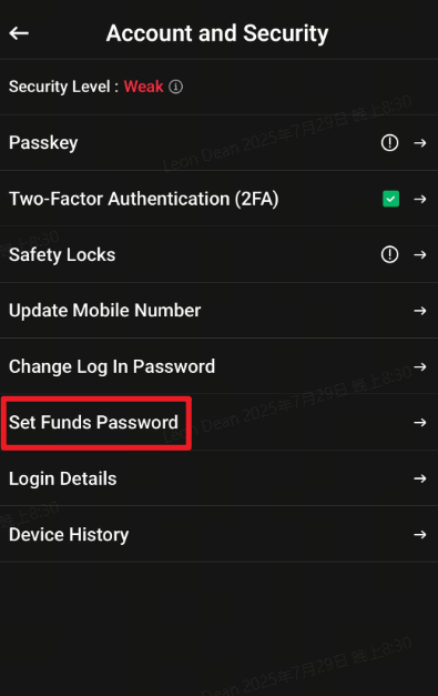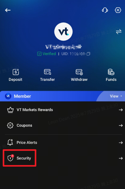 The fund password on the VT Markets App is the password you must enter each time you perform an "internal transfer" (a transfer between your own accounts) or "Withdrawal". To set the fund password, navigate to: Home > top left "Profile" > Security > Set Fund Password.