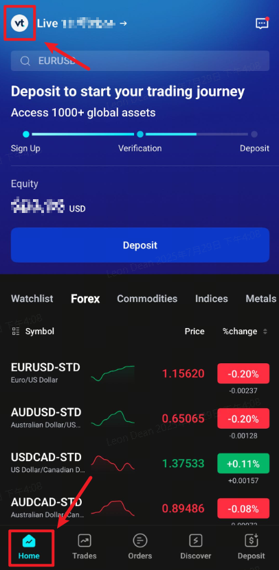 Sign up for your live VT Markets trading account.Deposit