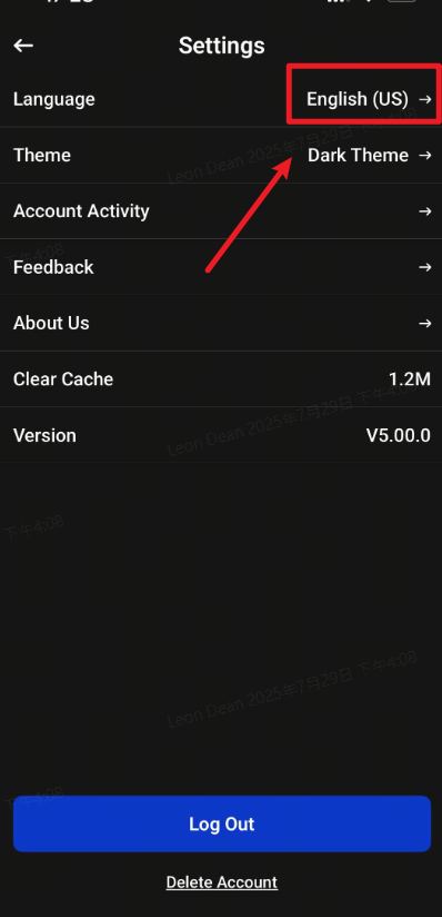 To change the language on the VT Markets App, go to: Home page > Click top left "Profile" > Settings icon> Language, then you may choose the language that you would like to be applied.