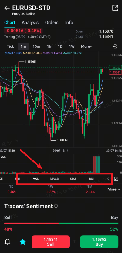 The VT Markets App provides basic indicators such as MACD, KDJ, RSI, CCI, and KD below each product chart. You can scroll left and right and click the indicator name to switch between indicators.
