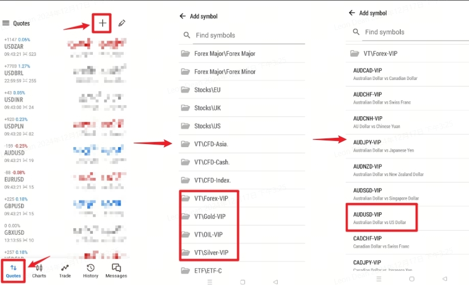 Choose the symbols that have suffixes for the Forex pairs, gold, silver, and oil such as AUDCAD-VIP, AUDCAD-ECN,XAUUSD-STD etc.