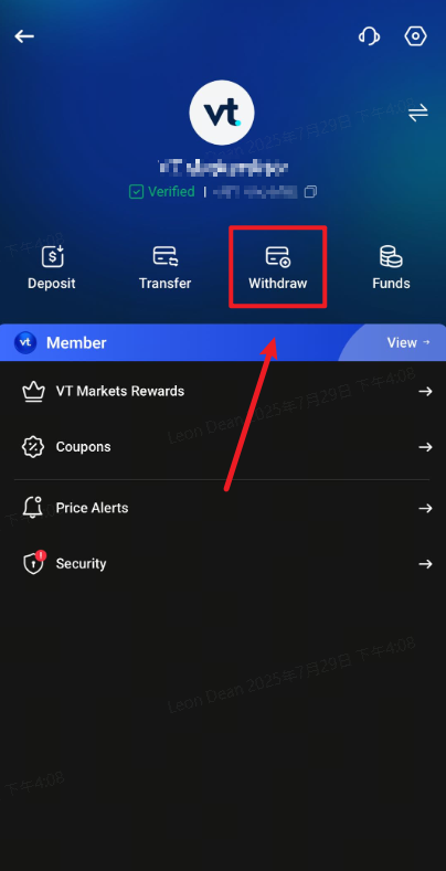 How do I make a withdrawal on the VT Markets App? Go to the "Home" tab, click the top left "profile," click on the "Withdraw" button and then choose which trading account needs to withdraw. Enter the amount you wish to withdraw. Select the payment method and click "Submit. Related articles How do I withdraw my funds if the used card is no longer available or has expired? Can I withdraw any of my credit bonus? How can I deposit funds using the VT Markets App? What is the procedure to withdraw funds and close the trading account in the case that the trader is a deceased client of VT Markets? How do I change my password?