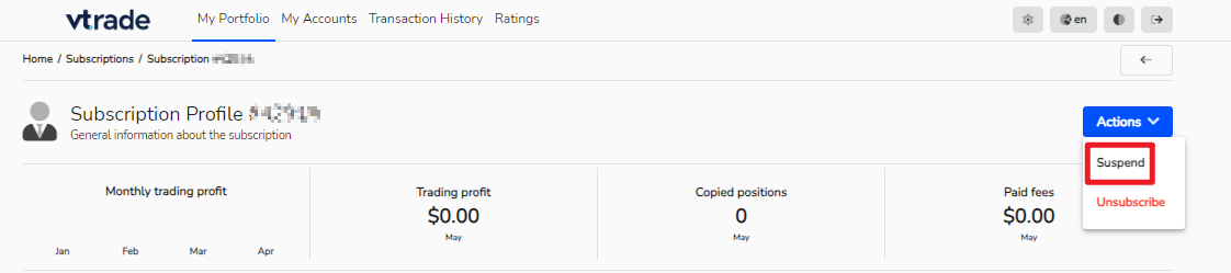 Note : Lors de la suspension, toutes les positions ouvertes existantes seront fermées lorsque le fournisseur fermera ses positions. Les nouvelles positions ouvertes par le fournisseur ne seront pas répliquées sur le compte du suiveur.