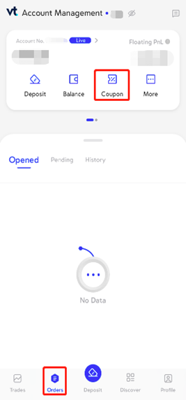 Nous organiserons divers événements officiels sur l'application VT Markets, au cours desquels des "coupons" seront distribués pour votre utilisation. Pour voir tous les coupons disponibles, cliquez sur "coupons" sur la page "Ordres".