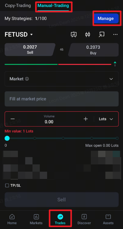 Passez en mode Trading manuel et sélectionnez Fournisseur.
