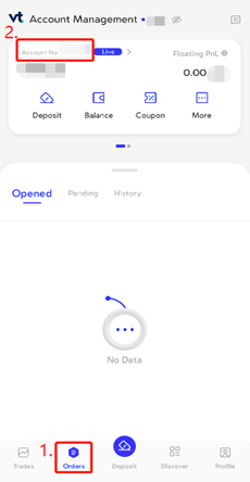 VT Marketsアプリにログインする都度、使用するトレード口座を選択しなければなりません。トレーディング口座を切り替えるには、Ordersページに移動し、上部にあるAccountをクリックして下さい。
