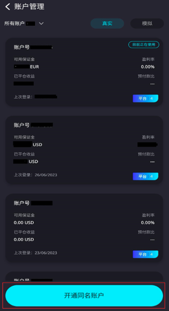 如何在 VT Markets App 申请同名账户? 请在下方功能列中点击“订单”,点击上方的“账户”进入账户管理页面再点“开通同名账户”申请同名账户。 相关文章 如何开设同名账户? 一个身份证明是否可以注册多个邮箱账号?最多可以同时持有几个账户? 如何下载MT4/MT5软件? 如何注销账户? 如何开立模拟账户?
