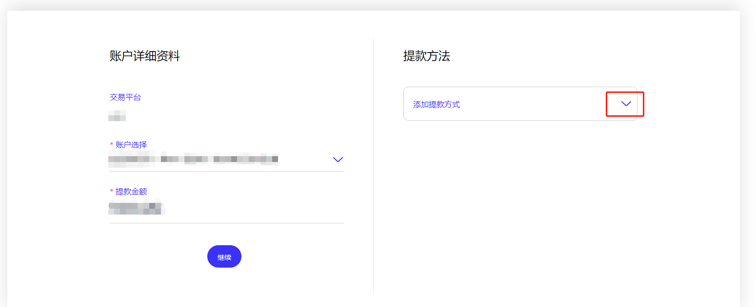 通过审核后您即可至「资金」>「出金」提交出金申请,并依照页面指示选择账户、输入金额。
