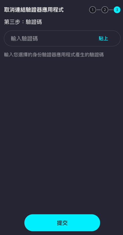 第三步: 輸入您選擇的身份驗證器應用程式產生的驗證碼